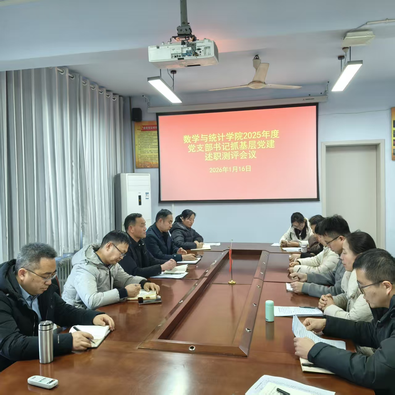 2026年1月16日下午,yl23455永利党委在数学楼204会议室组织召开2025年度党支部书记抓党建述职评议考核会。学院领导班子成员、全体师生党支部书记以及教师代表参加会议,会议由党委书记孟学超主持。