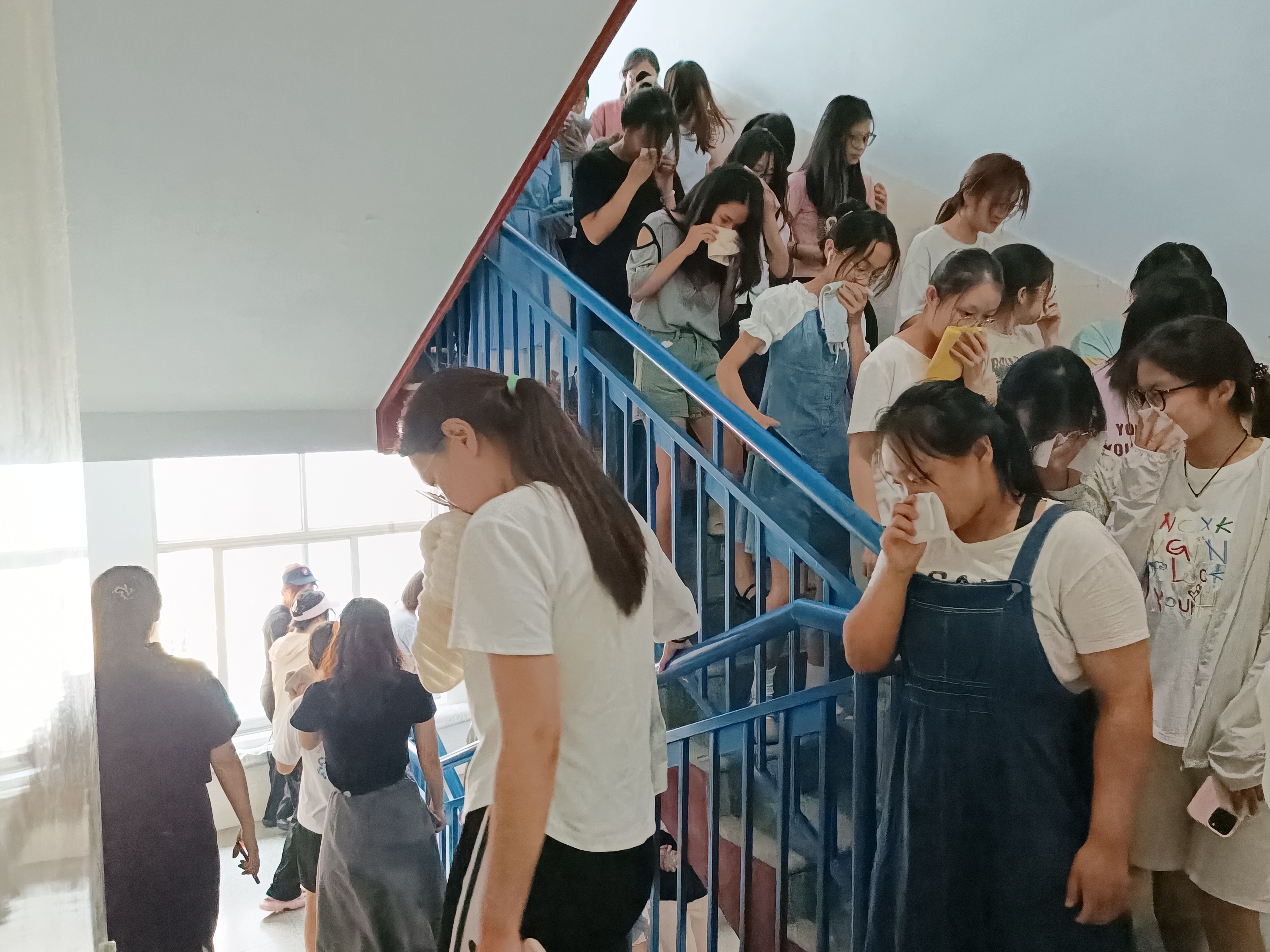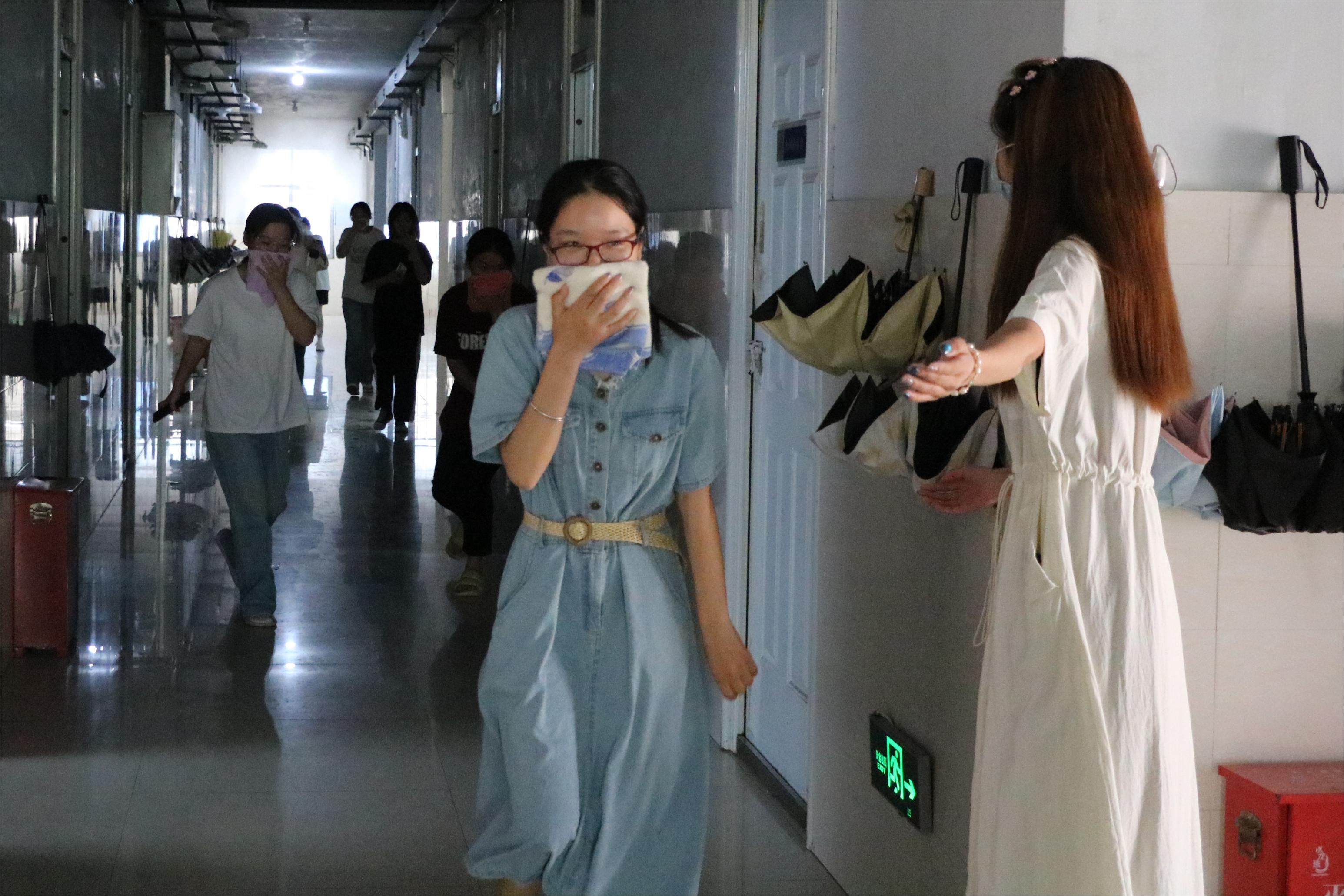演练开始前,校保卫处进行了精心的筹备,工作人员细致规划了演练流程和细节,并对演练场地进行了全面的检查和清理,确保疏散通道畅通无阻。随着警报声的响起,同学们迅速行动,及时按照预定的疏散路线有序撤离宿舍。同学们用湿毛巾捂住口鼻,弯腰低姿前行,确保自身安全。在疏散过程中,老师们在关键位置进行指示和引导,保证每一位学生都能到达指定的安全区域。整个过程紧张而有序,充分展现出了学生们的纪律性和应急能力。