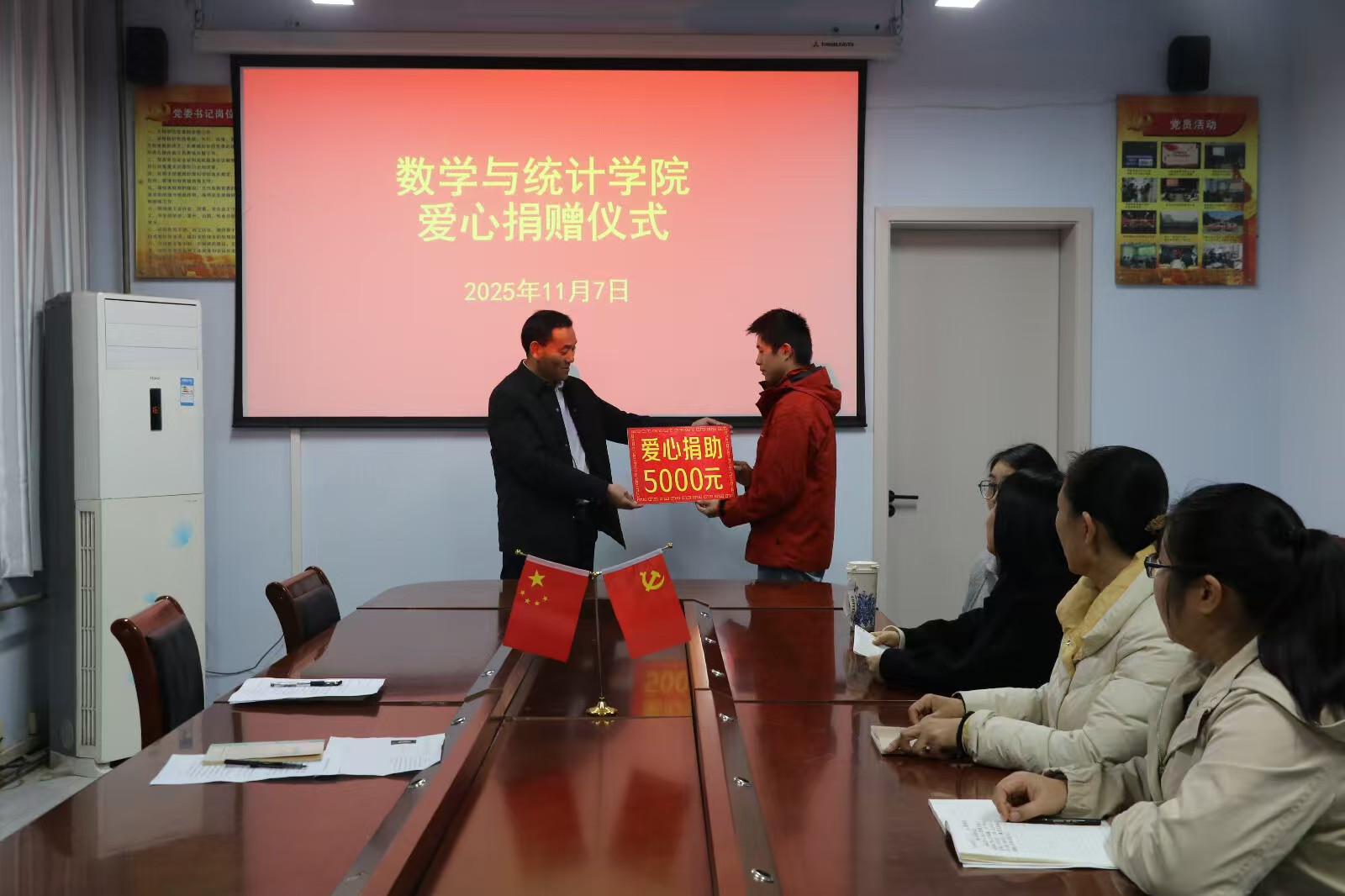为扎实推进资助育人工作,切实助力学生成长成才,11月7日下午,yl23455永利于睢阳校区办公楼204会议室举行了“爱心捐赠”仪式。学院党委书记孟学超、学工办主任李昊阳、各年级辅导员、2025级数学2班班主任张清娟以及受助学生共同参加。
