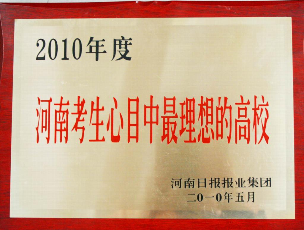 社会声誉好。先后荣获“河南省文明单位”、“河南省文明学校标兵”、“河南省大中专毕业生就业工作先进集体”等几十项省级以上荣誉称号。2007年被评为123所“中国发展最快的大学”之一;2008年被评为“河南公众最满意的十佳本科院校”;2009年被评为“河南最具影响力的十大教育品牌(本科)”;2010年被评为河南考生心目中最理想的高校之一;2011年荣获“河南本科院校综合实力20强高校”称号。